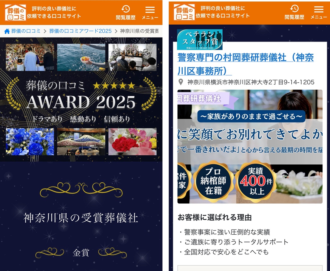 葬儀の口コミ2025アワードにて部門賞を受賞